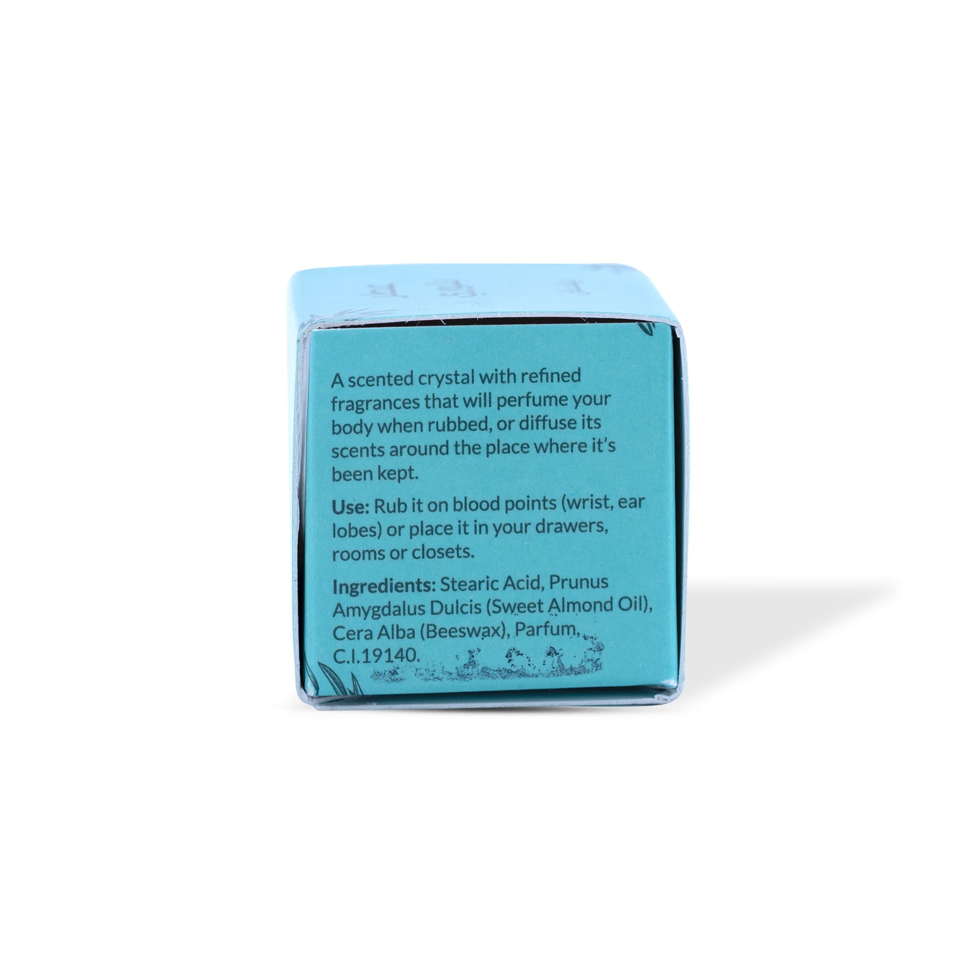 امسك العطر الكريستالي الصلب المربع الشكل وافركيه برفق على نقاط النبض - المعصمين والرقبة وخلف الأذنين. أعيدي وضعه حسب الحاجة طوال اليوم للحصول على رائحة عطرية مستمرة.