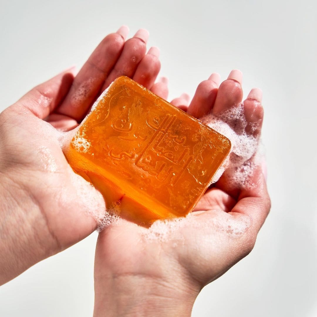 بلل بشرتك بالماء الدافئ. أرغي الصابون بين يديك أو على منشفة. دلكي الرغوة برفق على بشرتك بحركات دائرية. اشطفيه جيدًا بالماء الدافئ وجففيه بالتربيت عليه.