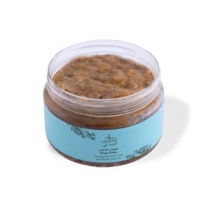 للحصول على تجربة تقشير محسنة، استخدمي معجون الصابون مع مقشر لطيف أو ليفة. يساعد ذلك على إزالة خلايا الجلد الميتة بفعالية أكبر ويترك بشرتك ناعمة ومتجددة أكثر.