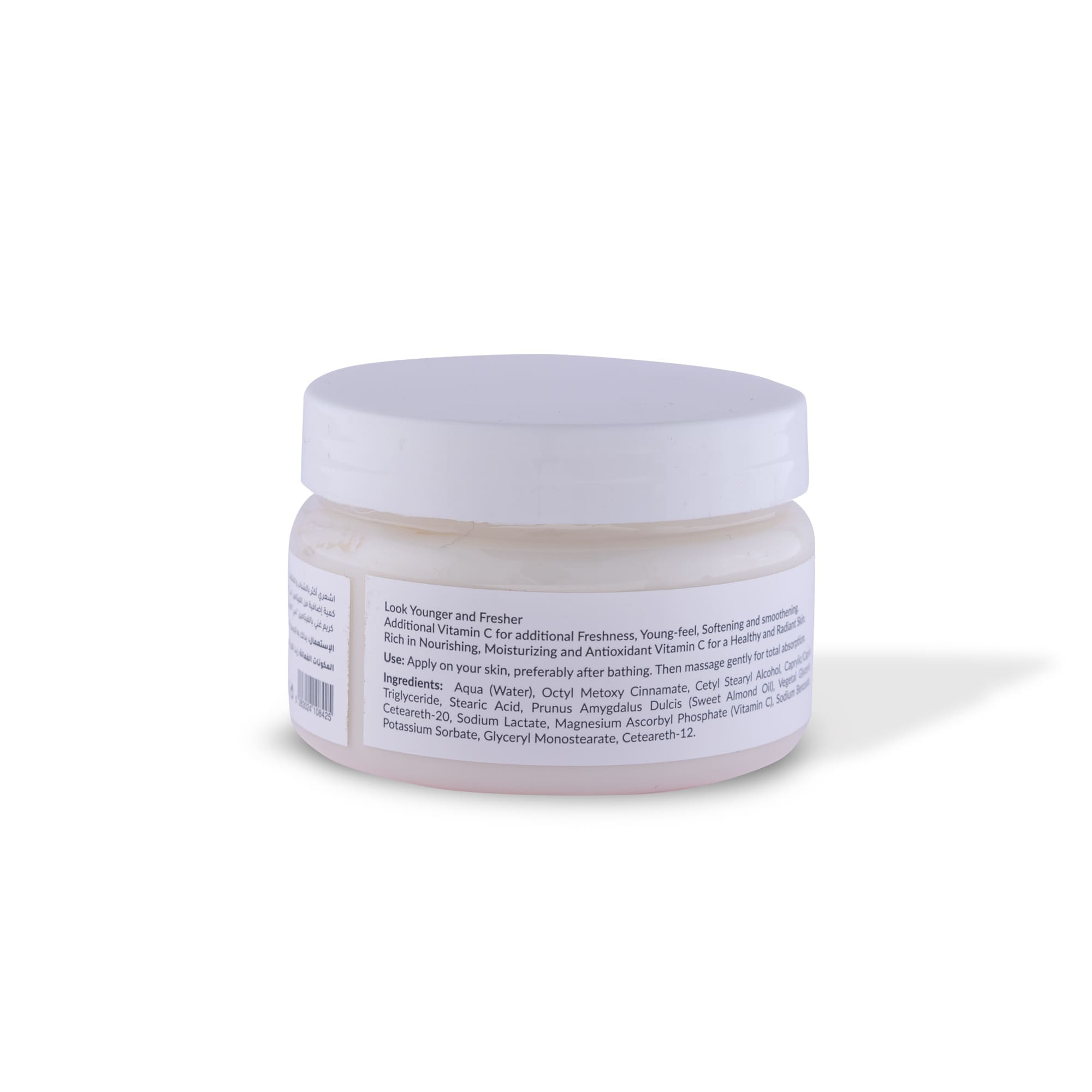 Infused with additional vitamin C, this body cream offers an extra dose of freshness, promoting a youthful feel while softening and smoothing the skin.